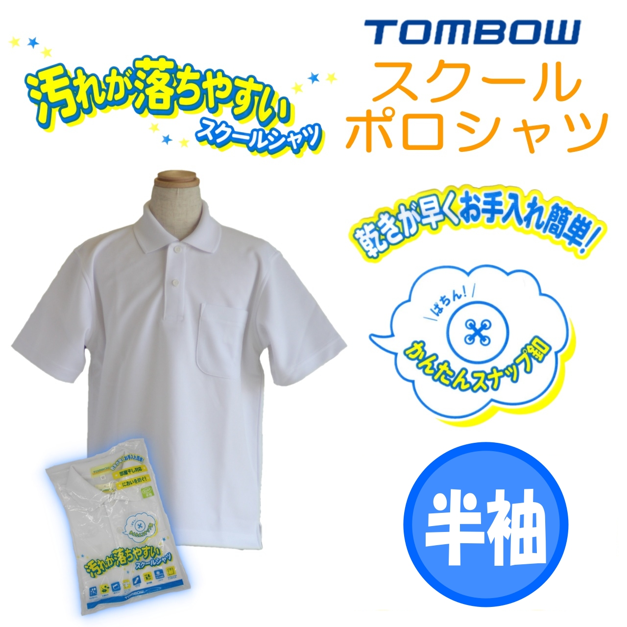 【男女兼用】 半袖ポロシャツ 小学生 トンボ 2170001-01 スクール ポロ 丈夫 長持ち 白 学生 スクールシャツ スナップボタン 半袖