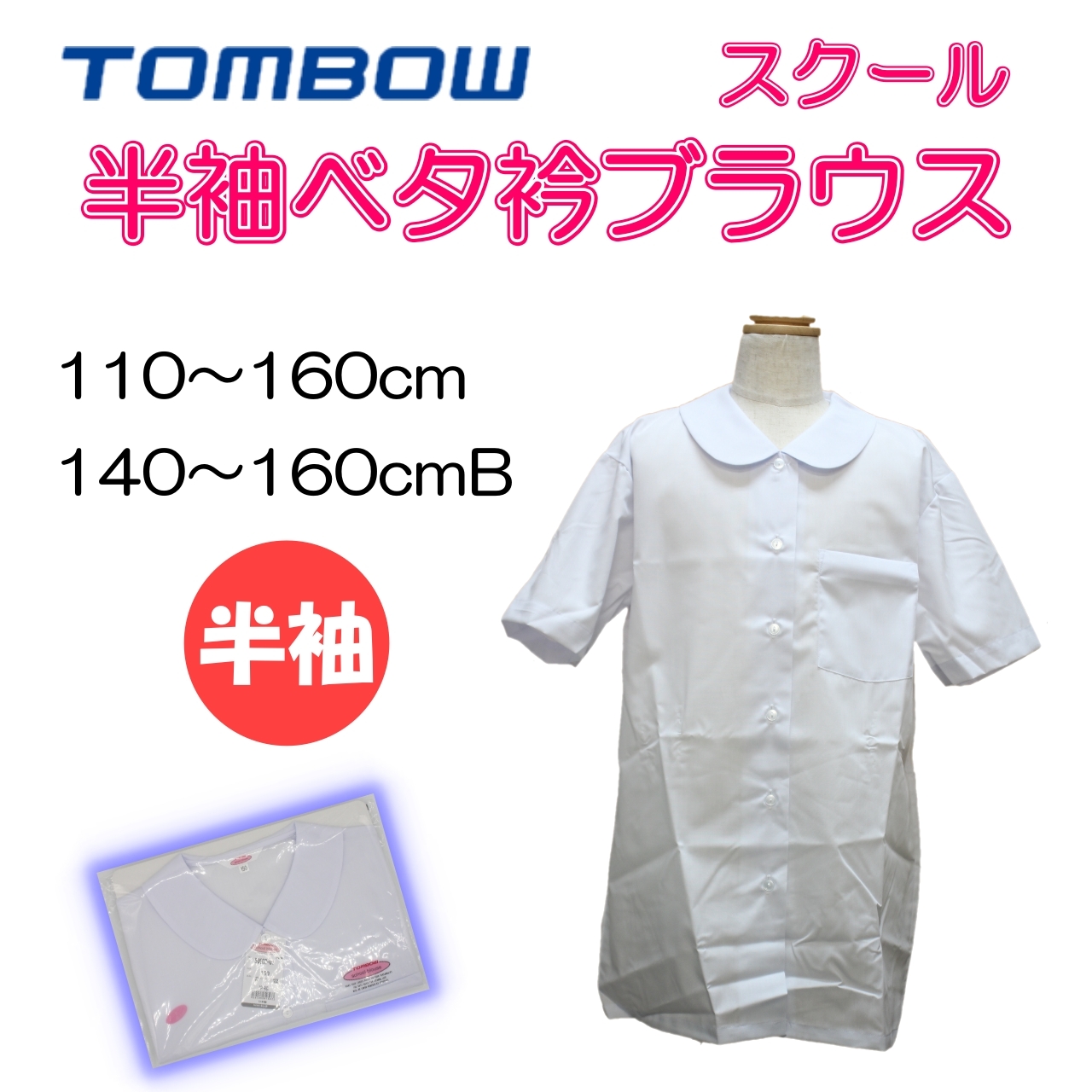 半袖ブラウス 小学生 トンボ スクール ブラウス ベタ衿 白 スクールシャツ 学生シャツ 丸襟 丸エリ 110-160 140-160B 半袖 かわいい