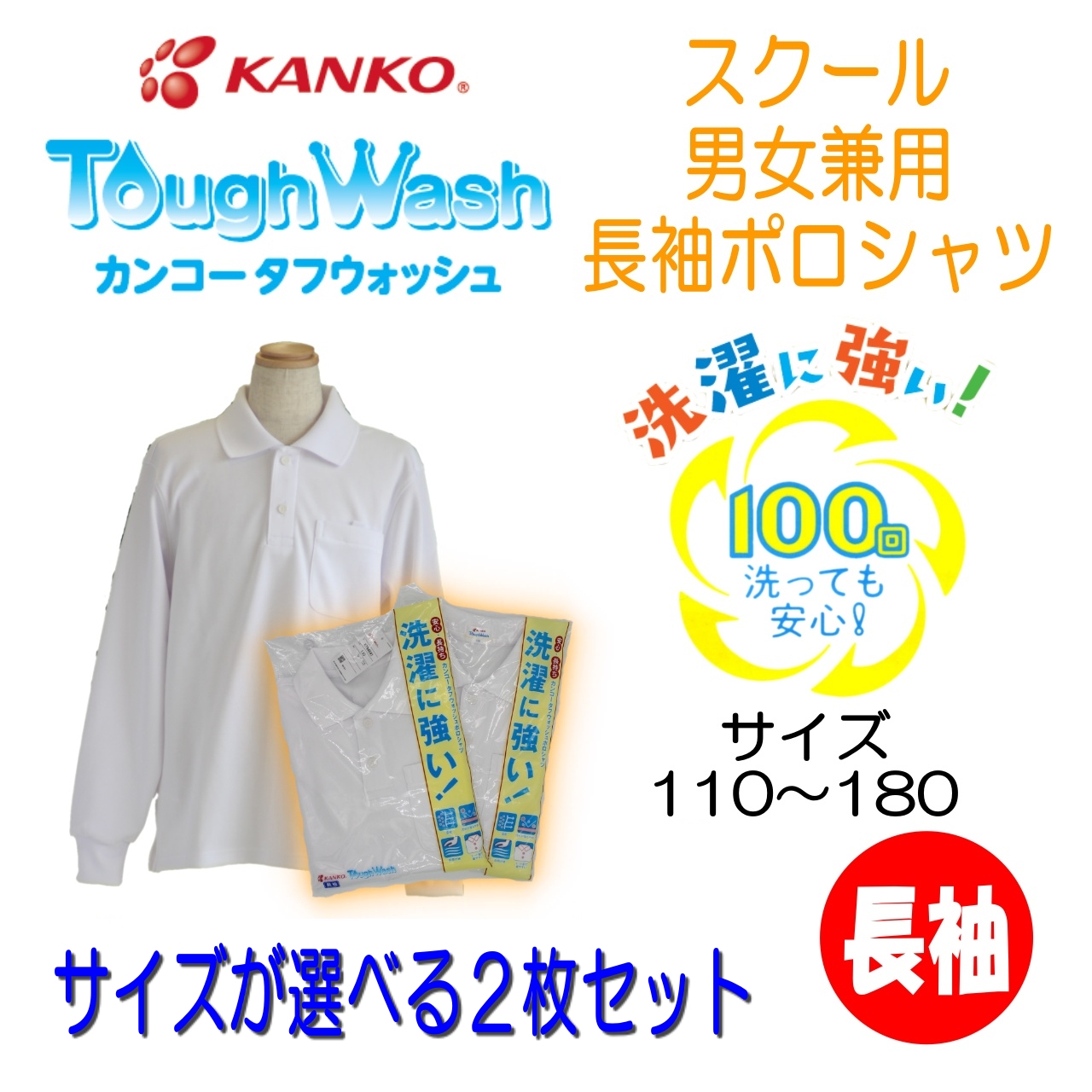 学生服トップメーカーのカンコー学生服のタフウォッシュ長袖ポロシャツ(2枚組)です。