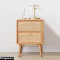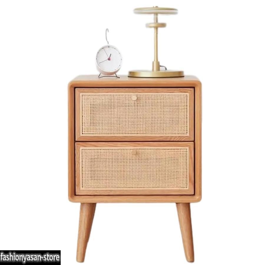 全無垢材ベッドサイドテーブル ナイトテーブル サイドテーブル ラタン純無垢材北欧モダンミニマリスト収納棚スモールオフィス寝室 引き出し付きオーク材 ナチュ