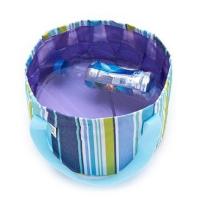 内部にビニールの袋(画像の紫色の部分)が縫い込まれておりますので水を溜められます。