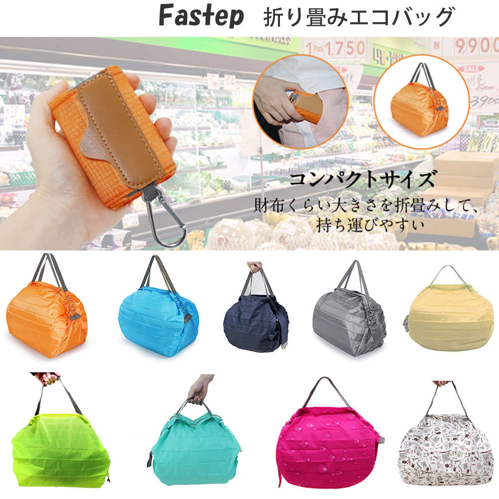 【収納便利 】この買い物袋は折畳みできる。両端を引っ張ると一気にたためるポケッタブルバッグです。方たちに少しでも楽だとか便利だな、と感じてもらうことで。袋を開くだけで簡単に使えます。収納便利し、携帯も便利です。実用的なカラビナが付いているので、バッグに掛けるだけでなく、いつでもバッグに入れることもできます。