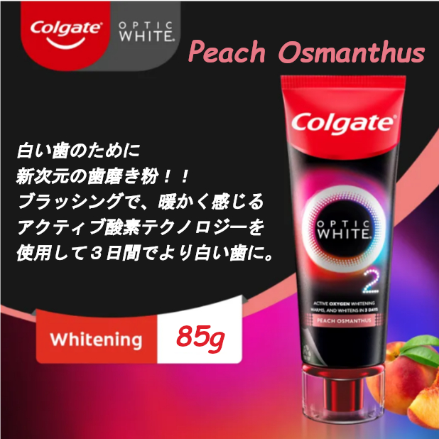 コルゲート colgate オプティックホワイトホワイトニングO2 Peach Osmanthus 85g ハミガキ粉 ホワイトニング 黄ばみ ヤニ 歯周病対策 定形外郵便送料無料!