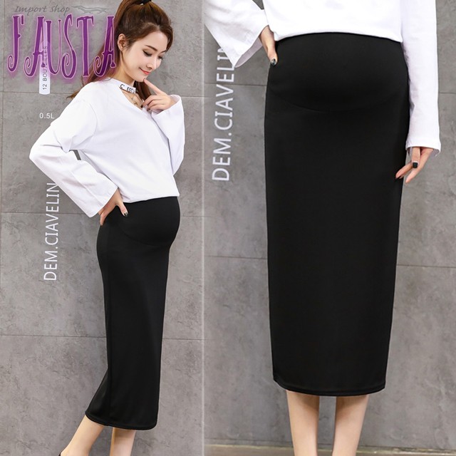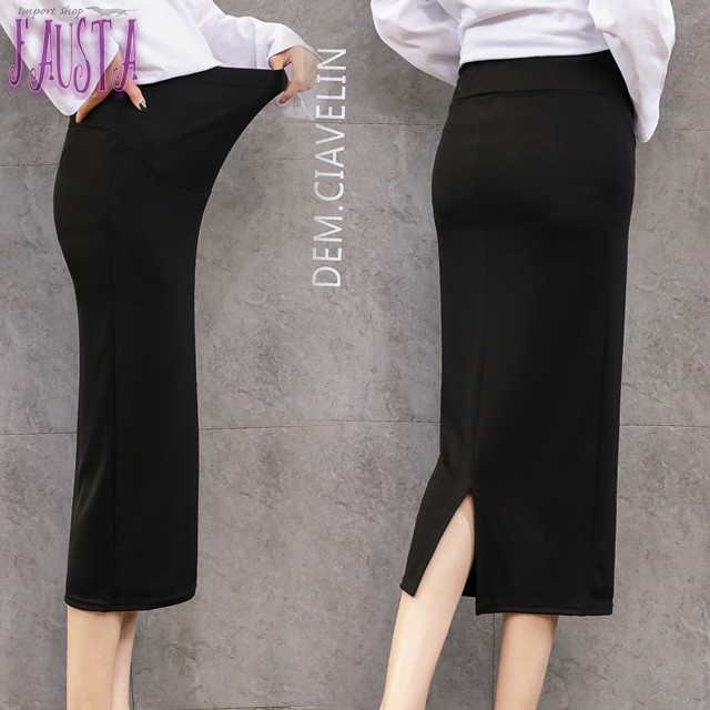 マタニティスカート オフィス 通勤 事務 妊婦服 タイト 膝丈 安い 妊婦服 産前産後 黒 シンプル スリット M071-20