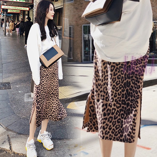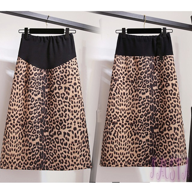 ・マタニティレオパード柄ミモレ丈スカート