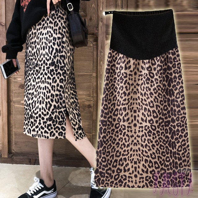 マタニティスカート 冬 スウェード調 豹柄 レオパード 膝下丈 妊婦服 マタニティースカート 産前産後 M113