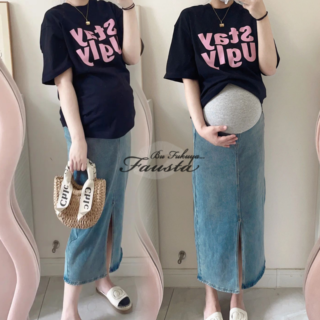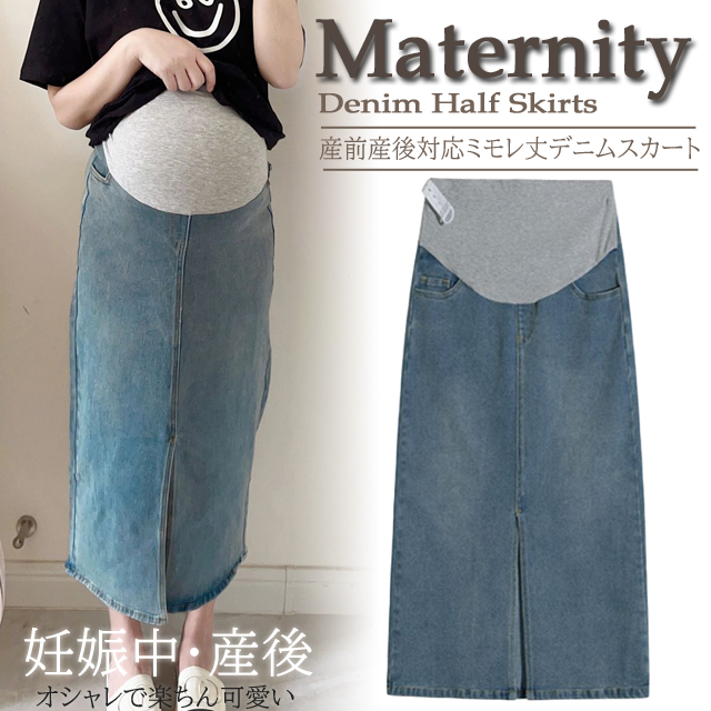 マタニティスカート デニムスカート マタニティ 服 ミモレ丈 ひざ丈スカート 妊婦服 産前産後 マタニティウェア M135