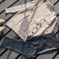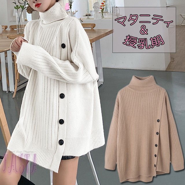授乳服 安い トップス チュニック 秋冬 マタニティトップス リブニット 長袖 ベージュ ベーシック 妊婦服 M138