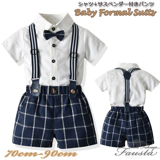 ベビースーツ 夏 半袖 80 90 ベビー服 セレモニースーツ 男の子 フォーマルスーツ 半袖 セット ベビースーツ サスペンダー 赤ちゃん R075
