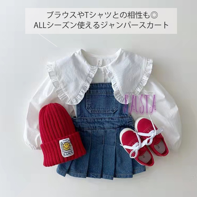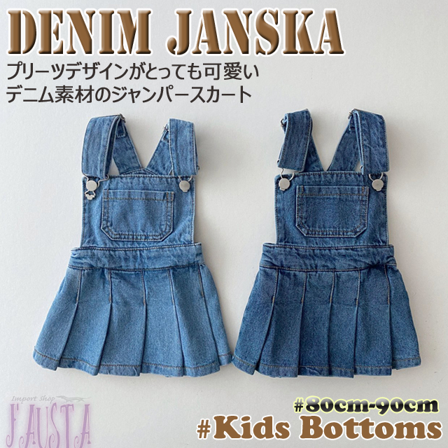 ベビー服 女の子 80 90 ジャンパースカート デニム プリーツ ワンピース ボトムス キッズ服 子供 シンプル R094