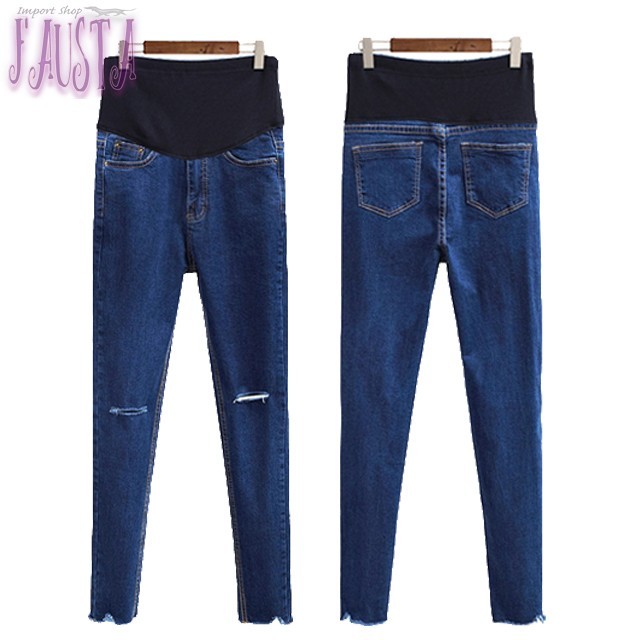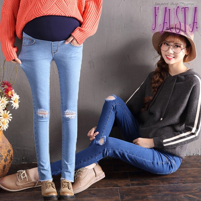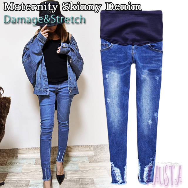 マタニティデニム マタニティパンツ スキニーパンツ マタニティ 服 産前産後 膝割れ ダメージ加工 妊婦服 M004