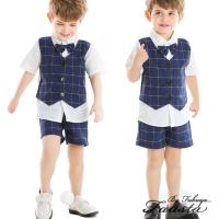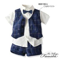 ベビー服 フォーマルスーツ 男の子 フォーマル 春 夏 半袖 3点セット ベスト付き ネイビー バースデイ R054