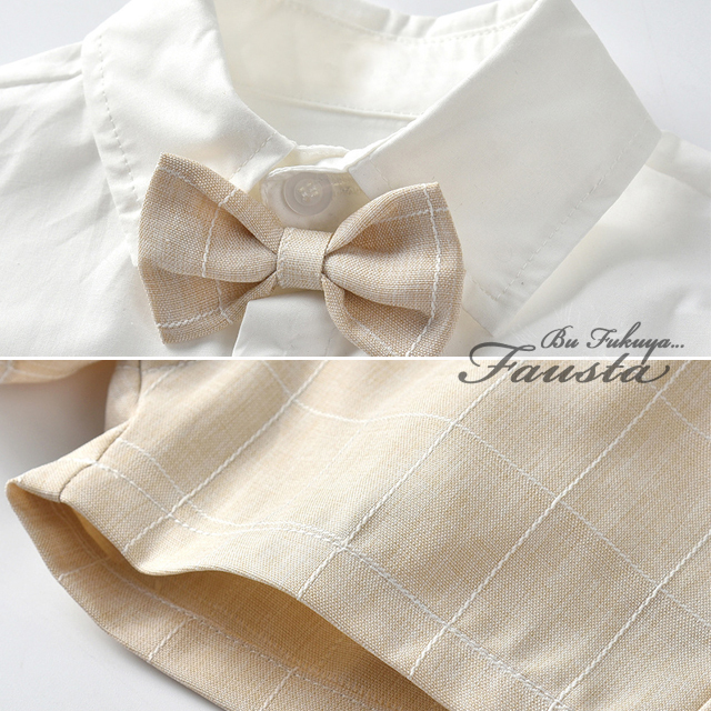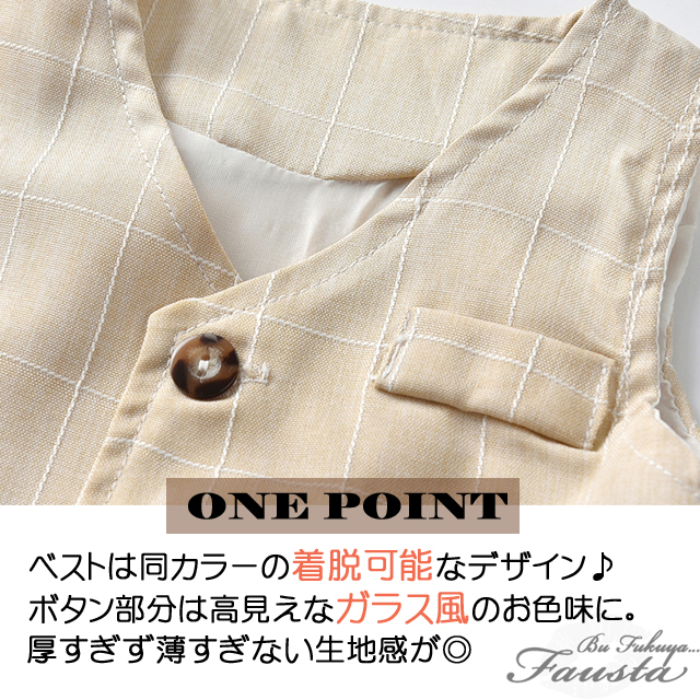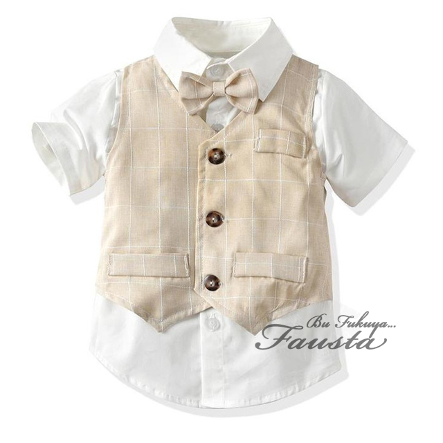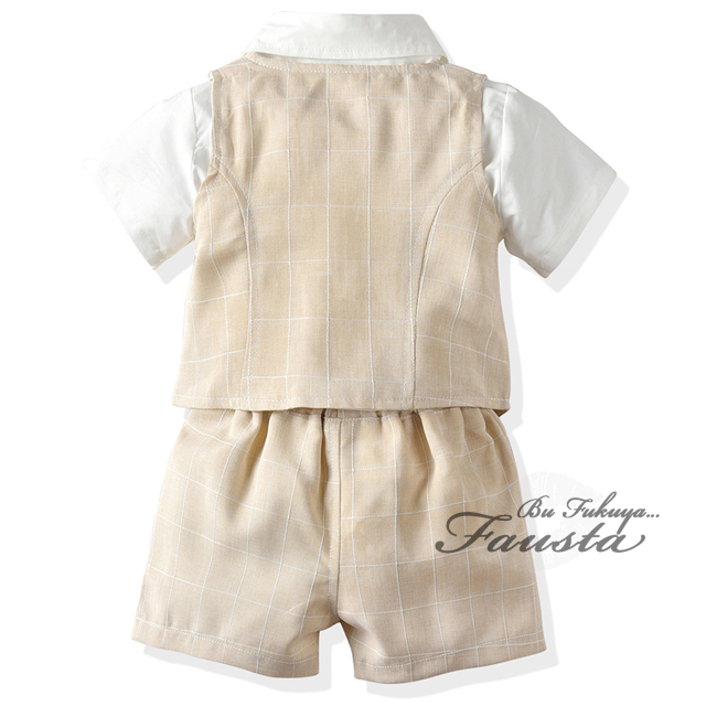 ベビー服 男の子 夏 フォーマル 春 半袖 フォーマルスーツ 3点セット ベスト付き ベージュ バースデイ R058