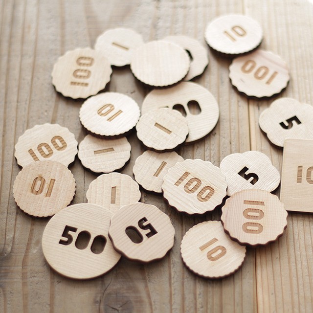 クッキーみたいな曲線デザインがかわいい木製コインたちは、