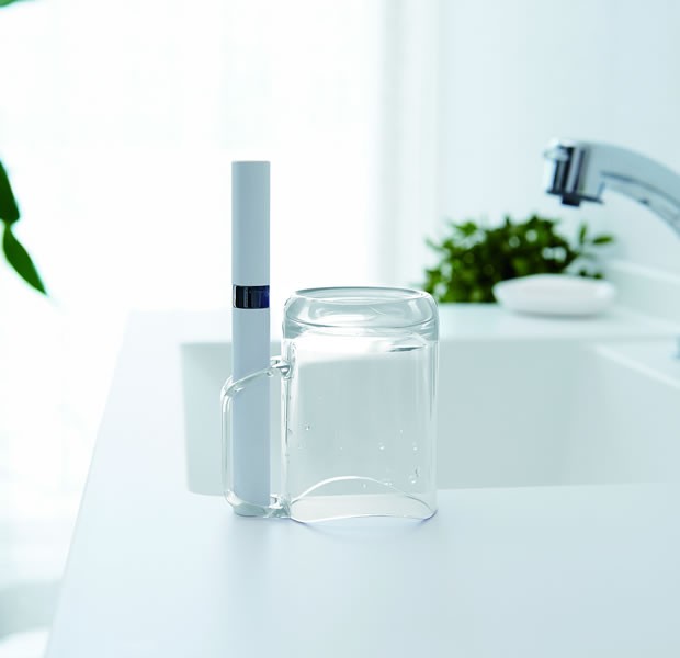 ●持ち手部分は歯ブラシ・小型電動歯ブラシを立てられるスタンドになっています。上下どちら向きでも使えます。