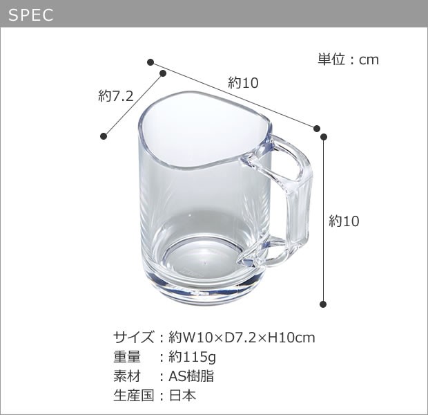 ●飲み口部分がカーブした形状になっていて、ふせて置いても飲み口が下につかず衛生的な歯磨き用コップです。