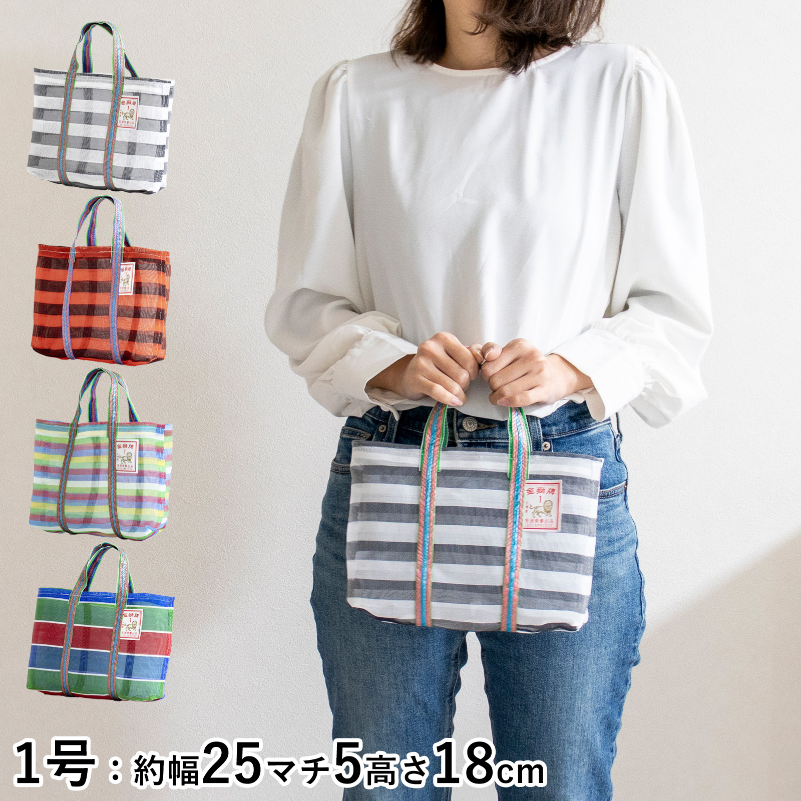 \1/18はポイント10倍/ 漁師網バッグ 1号 台湾 金獅牌 エコバッグ メッシュバッグ ボーダー 軽量 小さい 収納 手提げ 台湾雑貨