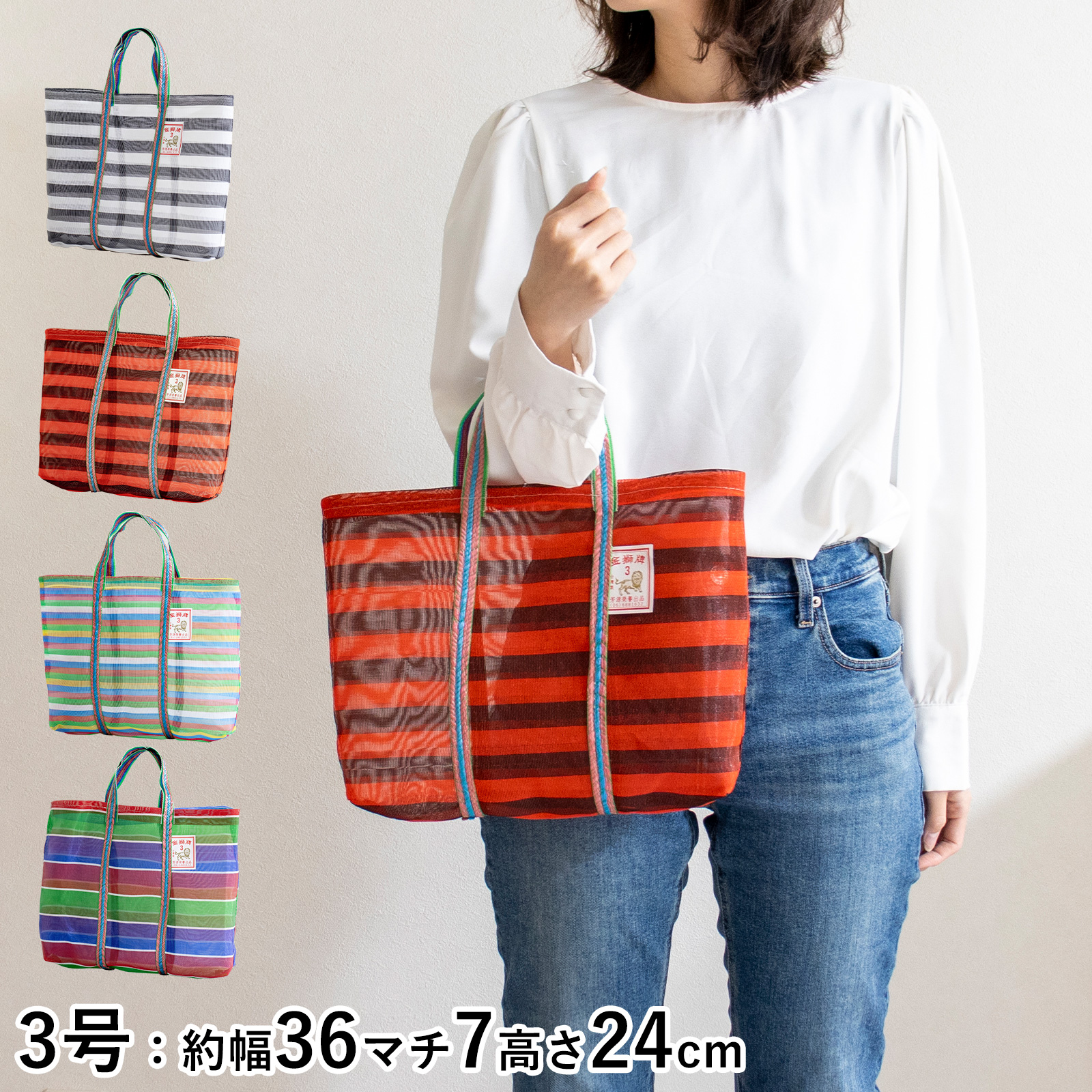 ●A4サイズが入る3号サイズはお稽古バッグや図書館バッグ、普段使いのトートバッグに便利な大きさです。ランチバッグや、玉ねぎなど野菜の収納にもぴったり。