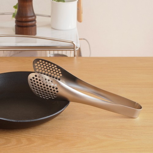 穴あきタイプはゆでた麺類など汁気を切りたいものをつかむ時に便利です。