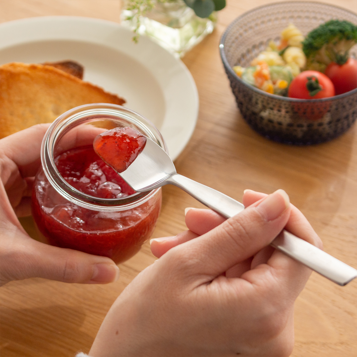 ジャムスプーンはジャムをビンから取り出し、
