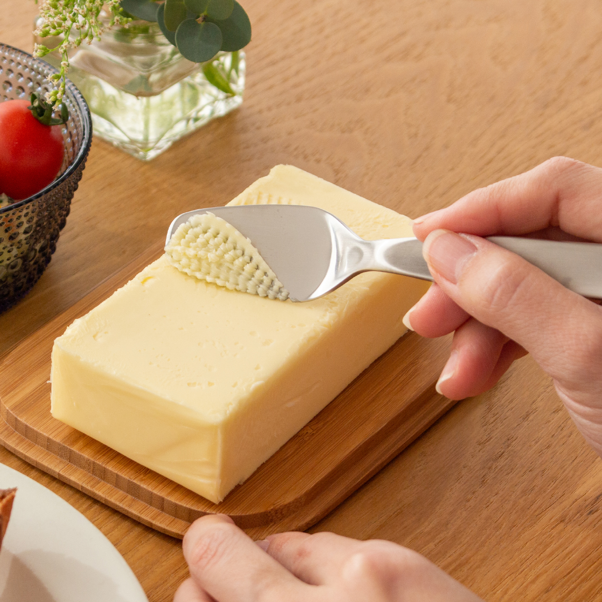 バターを削りやすく塗り広げやすい形状。