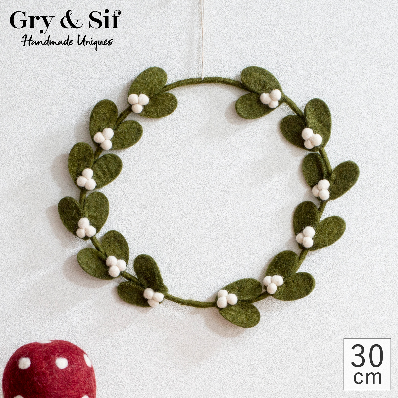 \1/10-12はポイント10倍/ ヤドリギリース L 30cm ダークグリーン フェルト 北欧 リース ハンドメイド クリスマス オーナメント フェルトリース Gry&Sif