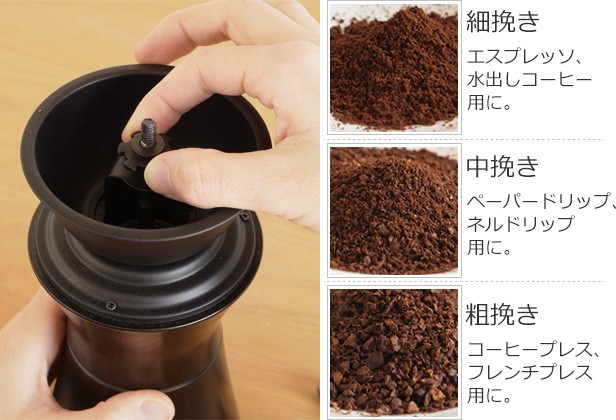 細挽きから粗挽きまで、お好みの用途に合わせて調節してください。