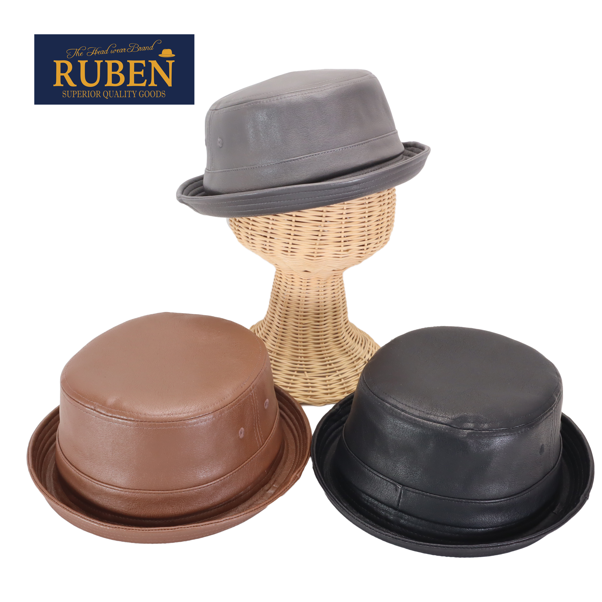 ルーベン(RUBEN)エコレザーポークパイハット 帽子 メンズ レディース帽子 ユニセックス デニム テラピンチ エコレザー オールシーズン