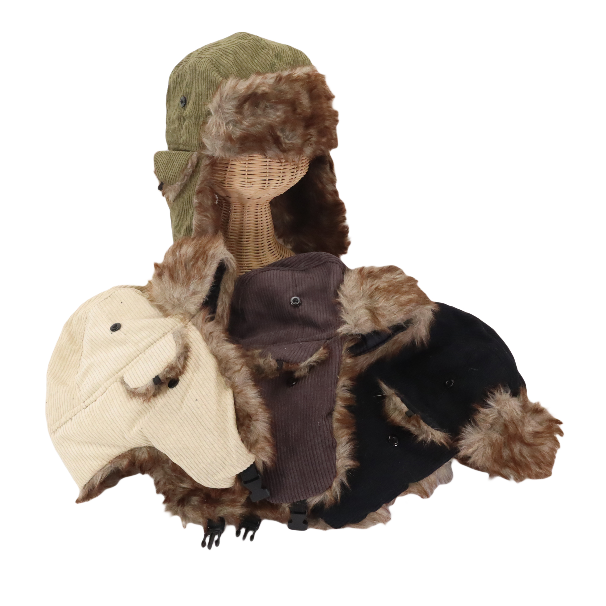 コーデュロイアビエータキャップ 帽子 メンズ レディース帽子 ユニセックス フライトキャップ 防寒 耳当て ファー ボア コーデュロイ アビエーター 秋冬