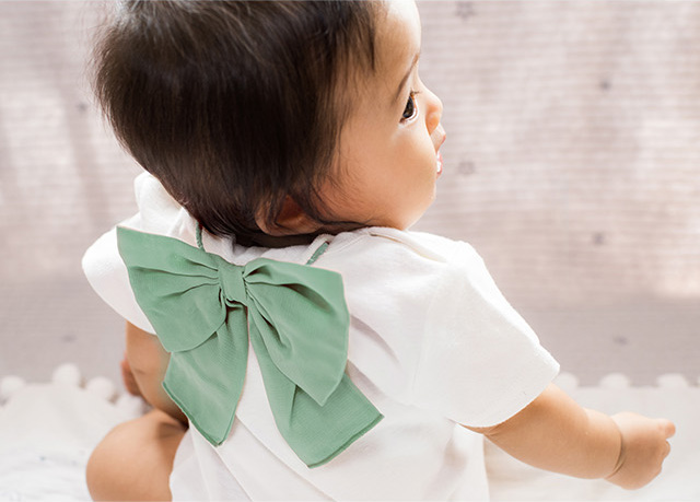 背中の汗を吸い取りながらお洋服もかわいらしくコーディネイトしてくれる、おしゃれで便利なベビー用汗取りパッドです。