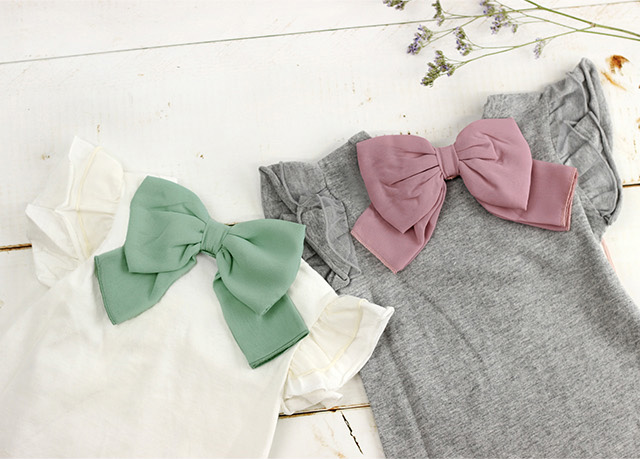 ふんわりなめらかなシフォン素材のとろみリボンが、子供っぽくなり過ぎず可愛らしいデザインです。