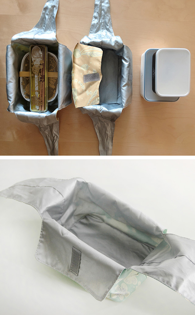 内側全面に薄手の保温・保冷効果のある生地を使用しています。
