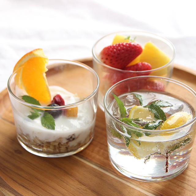 飲み物を入れるのはもちろん、サラダやデザートカップ、雑貨入れとしてもお使いいただけます。使いやすい形で何を入れてもサマになる、万能なガラスカップです。