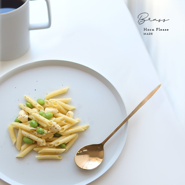 真鍮ならではのやわらかいゴールドカラーが美しく上品な、「スムース ディナースプーン」。
