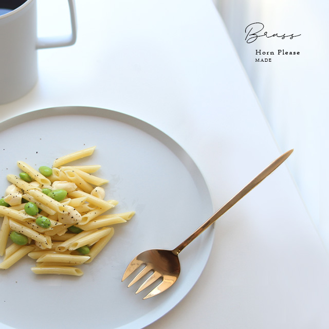 真鍮ならではのやわらかいゴールドカラーが美しく上品な、「スムース ディナーフォーク」。