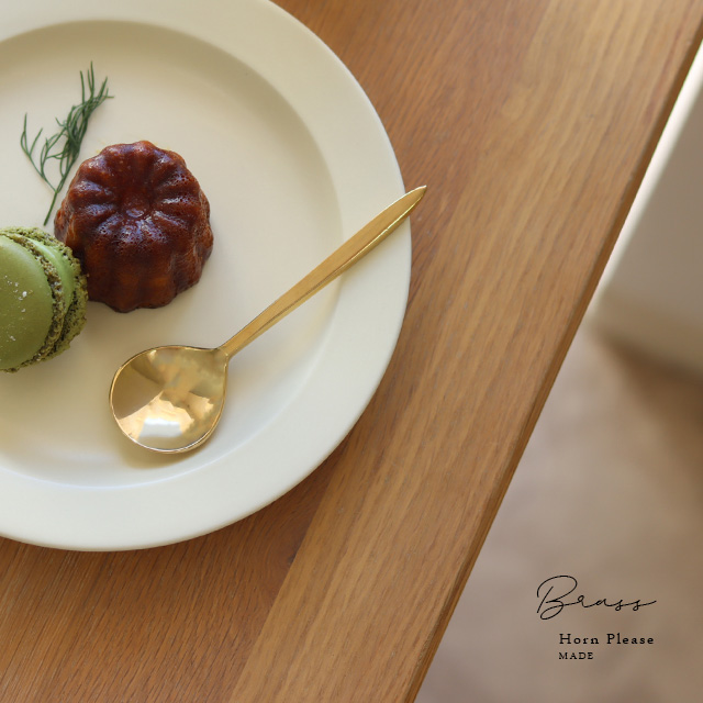 真鍮ならではのやわらかいゴールドカラーが美しく上品な、「スムース デザートスプーン」。