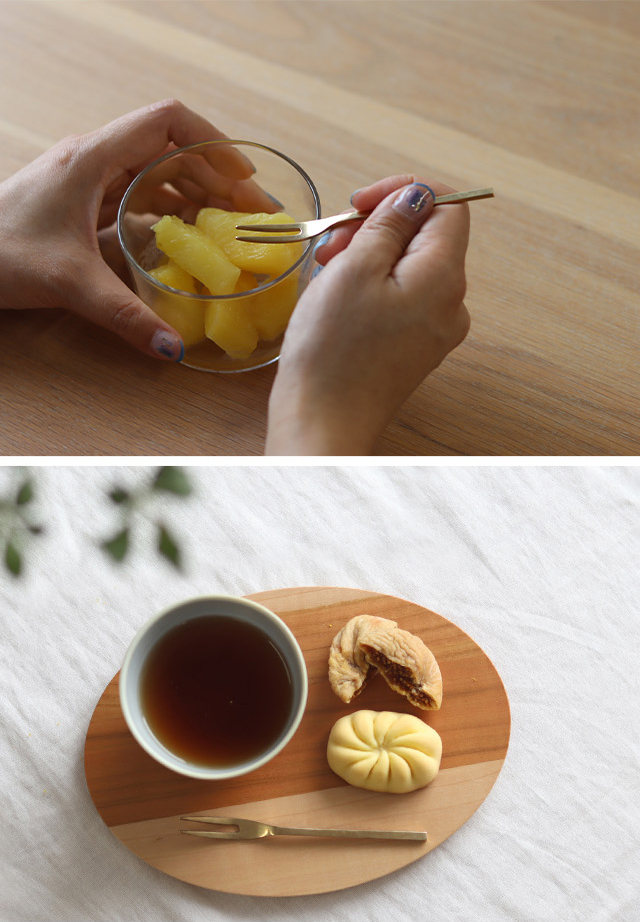 小さくて可愛らしいサイズ感のフォークは、果物や和菓子にはもちろん、オリーブやチーズなどのちょっとしたものを食べる際のピックフォークとしても◎。