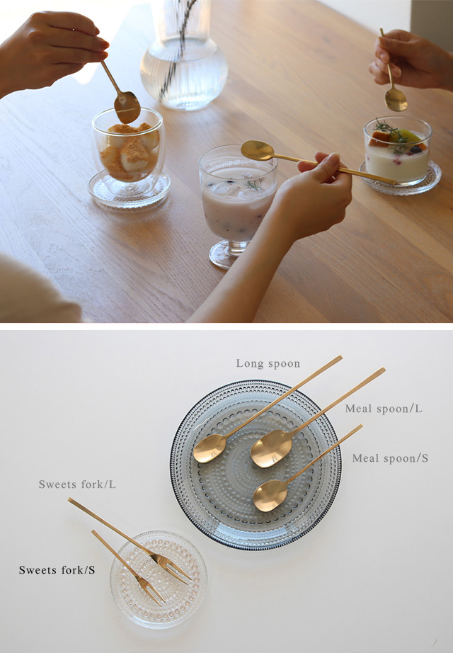 真鍮ならではのやわらかいゴールドカラーが美しく上品な、「スイーツフォーク/S」。