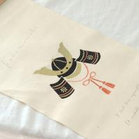 生成りの生地に刺繍された兜飾りがとても映える一枚。