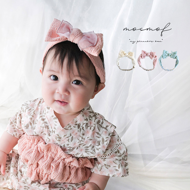 ベビーのお顔周りを華やかに演出するリボンのヘアバンド。