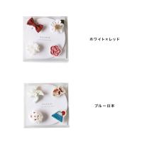 ホワイト×レッドは、リボンやお花をモチーフにした女の子らしいセットに。ブルー日本は、富士山や風車など日本の縁起物をモチーフにした、男の子も女の子も使っていただけるセットになっています。