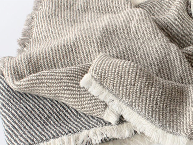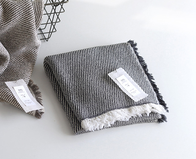 波のうねりをイメージした斜向ストライプ模様に、アクセントとして2色のフリンジがあしらわれています。