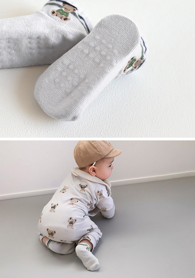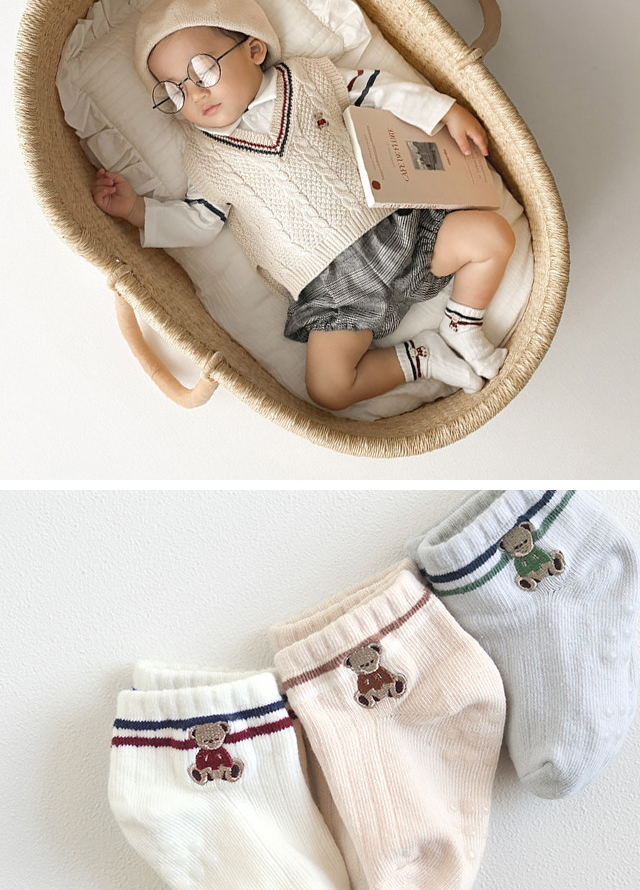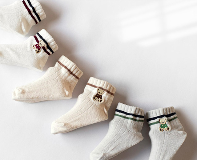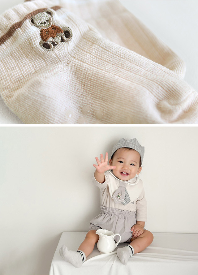 きちんとにもカジュアルにも くま刺繍が可愛いベビーソックス
