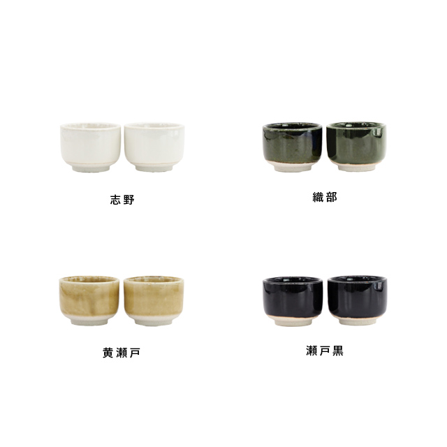 カラーは4種類。とろけるような自然な白色の"志野"・深い緑色の味わいが渋い"織部"・あたたかい黄味を帯びた"黄瀬戸"・黒く艶やかな"瀬戸黒"からお選びいただけます。