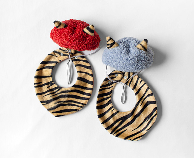 ふわふわの質感を再現した頭に、ちょこんと立つトラ柄のツノが映える立体的なデザインです。