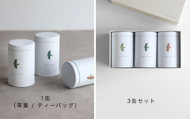 朝にぴったりの「めざめのお茶」、一日の終わりを穏やかに締めくくる「おやすみのお茶」各1缶ずつがセットに。