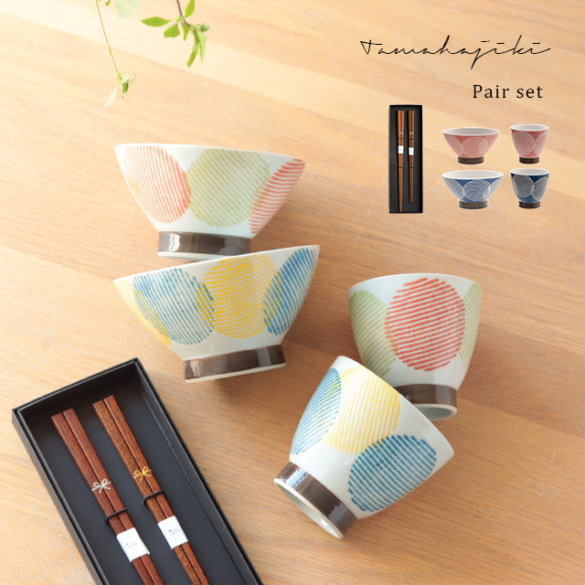 茶碗大小2個、湯呑み大小2個、夫婦箸BOX(2本入り)
