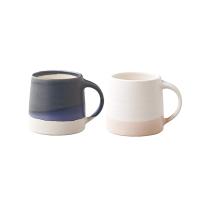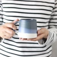 ろくろによる手跡と、重なり合う2色の釉薬による豊かな表情のマグ。質感が異なる光沢とマットの釉薬が重なることで生まれた奥深い景色は、コーヒーを愉しむ至福のひとときを演出します。