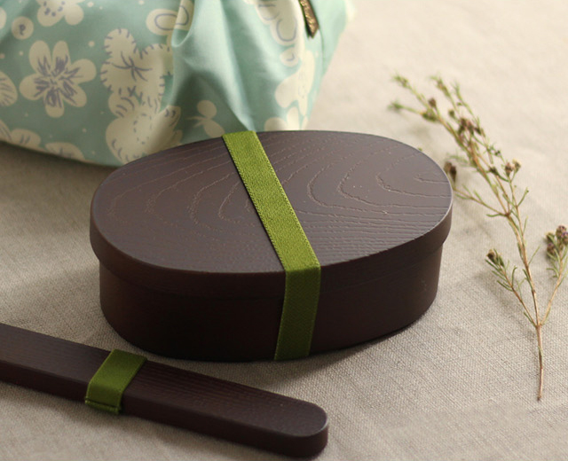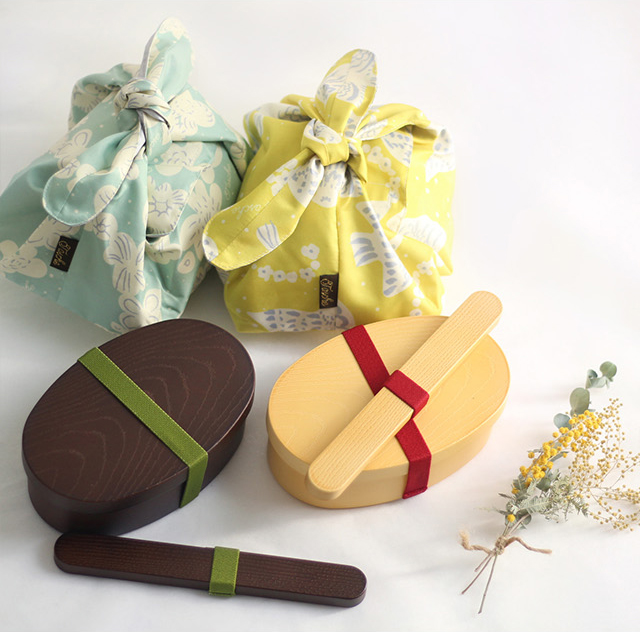 樹脂でできたわっぱ弁当とお箸&ケース、大人可愛いお弁当包みの3点セット。