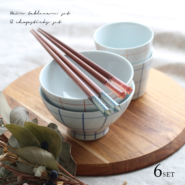 [茶碗・カップ]磁器(波佐見焼) [箸]素地の種類:天然木、表面塗装:アクリルウレタン塗装